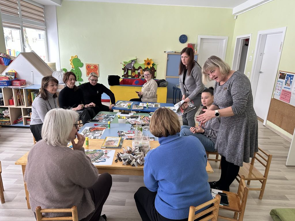 Lopšelio-darželio darbuotojams 2026 m. vasario mėnesį vyko meno terapeutės Jolitos Balčiauskienės vedami seminarų ciklo užsiėmimai „Efektyvus ryšys ir bendradarbiavimas komandoje“. Užsiėmimų tikslai: geriau pažinti ir suprasti save bei kitus, mokytis veiksmingai komunikuoti, pajausti komandinės dvasios vertę, kurti bendrą komandos viziją. Užsiėmimuose tyrinėjome kaip stiprinti komandos narių tarpusavio ryšį, pasitikėjimą, priėmimą ir gebėjimą bendradarbiauti. Per spalvas, formas ir simbolius išreiškėme, kas kiekvienam dalyviui svarbu bendrame darbe – klausymasis, palaikymas, atvirumas, atsakomybė.